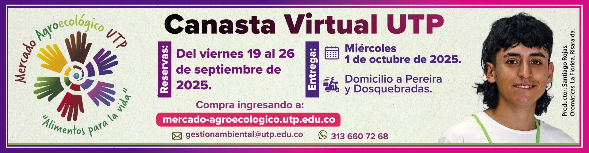 El Mercado Agroecol贸gico UTP Alimentos para la Vida, es un proceso de fortalecimiento de las econom铆as locales y alternativas a trav茅s de la generaci贸n de un espacio de comercializaci贸n y divulgaci贸n, para que productores y consumidores de alimentos agroecol贸gicos intercambien saberes, experiencias, semillas y alimentos, como una estrategia que aporte a la construcci贸n de soberan铆a alimentaria y el di谩logo de saberes en la ecorregi贸n Eje Cafetero. Este ejercicio es realizado por el Centro de Gesti贸n Ambiental de la Universidad Tecnol贸gica de Pereira.